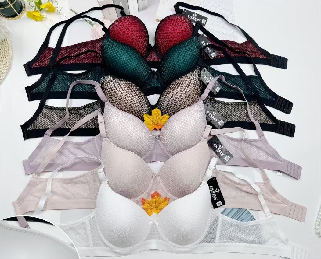 В упаковке три бюстгальтера одного цвета разных размеров.