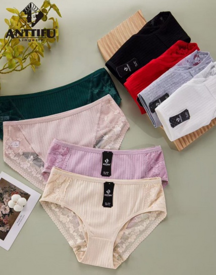 2825 AnttifuХлопковые женские трусики с кружевом.