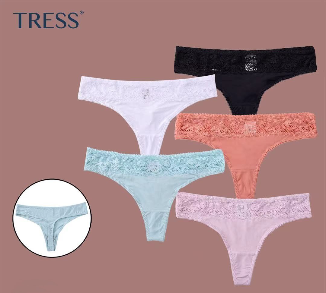 Женские трусики стринги из микрофибры и кружева.