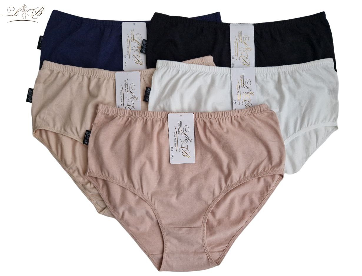 В одній упаковці 24 шт. трусів різних розмірів та кольорів (3 синіх, 3 молочних, 6 чорних, 6 бежевих, 6 пудрових).